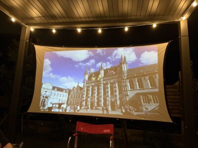 - 屋内での使用:自宅の壁や天井、床に投影しても映像は鮮明。静かな環境なら本体スピーカーだけで十分。