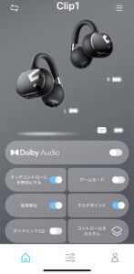 Clip1 は LDAC(高ビットレート伝送)※ をサポートしており、ハイレゾに近い音質を得られます。一方で Dolby Audio / DynamicEQ を搭載しており、モード切替で「音楽/映画」用途に合わせてサウンド傾向を調整できます。